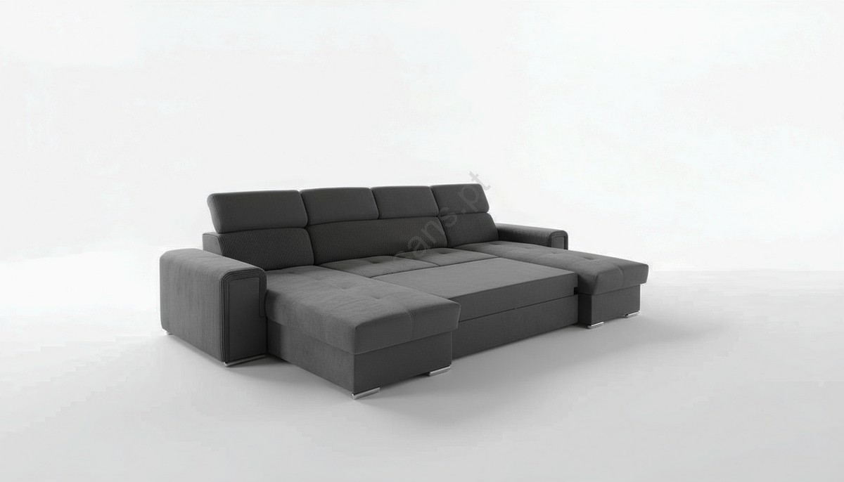 • Sofá-cama em U com canto reversível e baú de arrumação SALVADA, cinza escuro