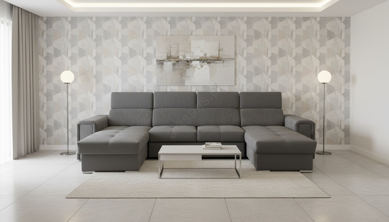 • Sofá de canto em U espaçoso oferece conforto e um design elegante.