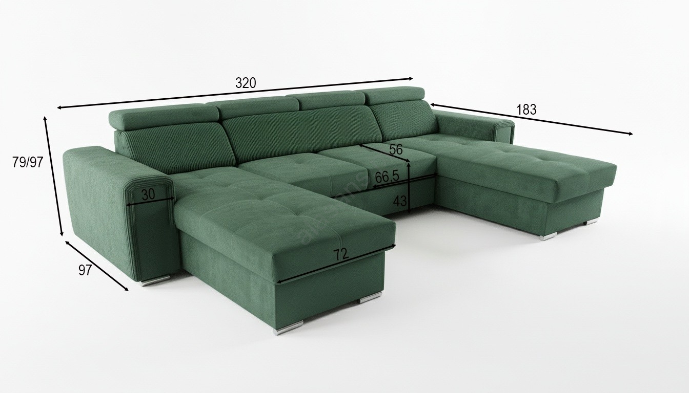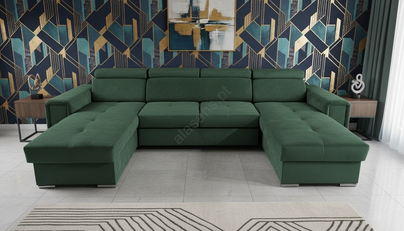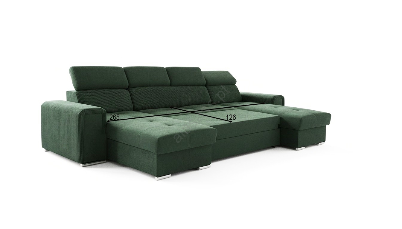 • Sofá-cama com canto em U universal e espaço de arrumação SALVADA verde