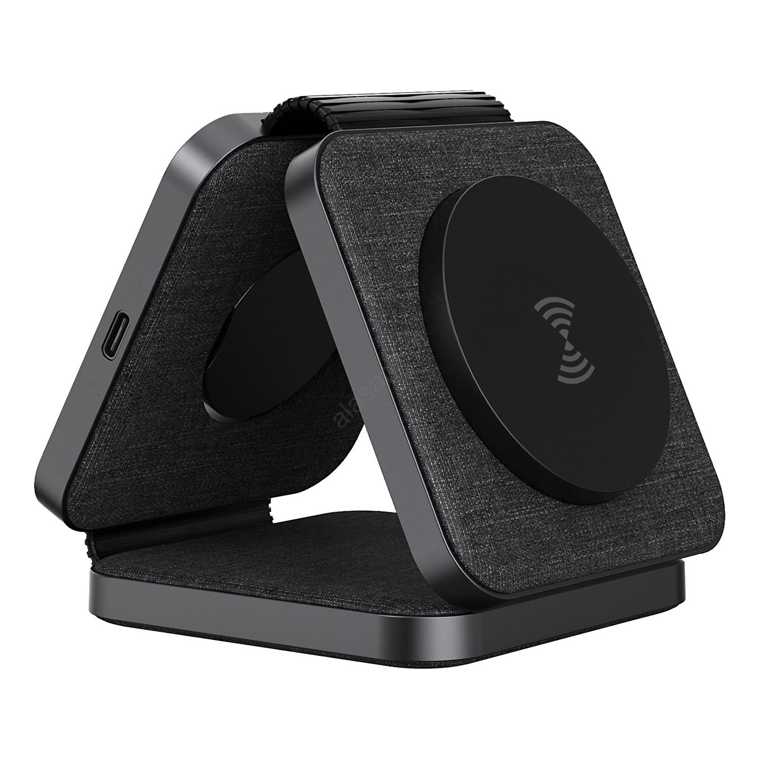 • Design: dobrável, portátil, com várias superfícies de carregamento (“3 em 1”) e possibilidade de funcionar como suporte.
