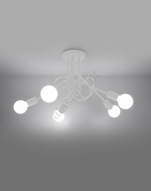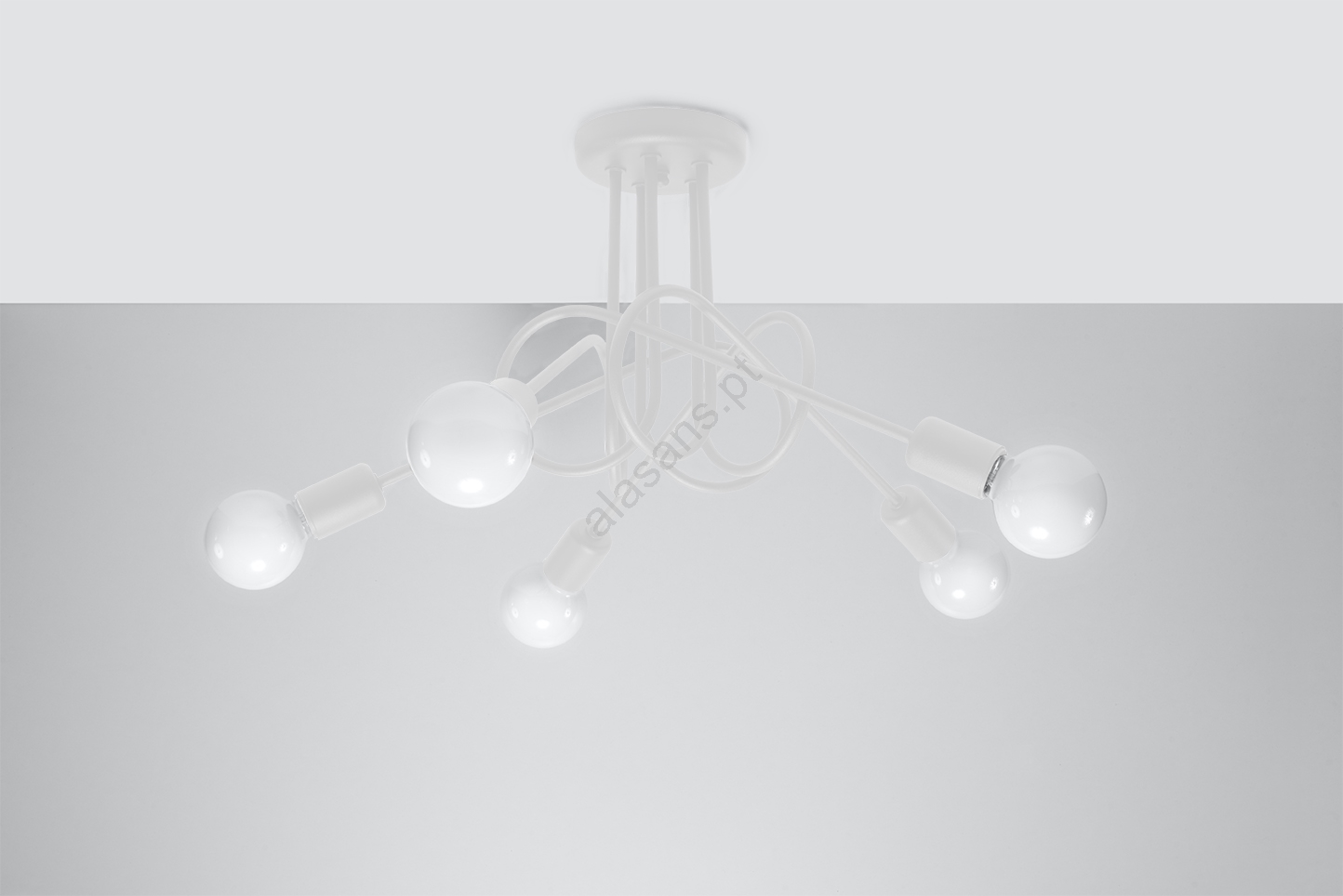 Candeeiro integrado LOOP 5xE27/15W/230V branco caracteriza-se por um design agradável e funcional.  Uma lâmpada com casquilho E27 é adequada para a iluminação Aqui, pode comprar outras lâmpadas a preços vantajosos. Terá um complemento interessante para a sua casa.