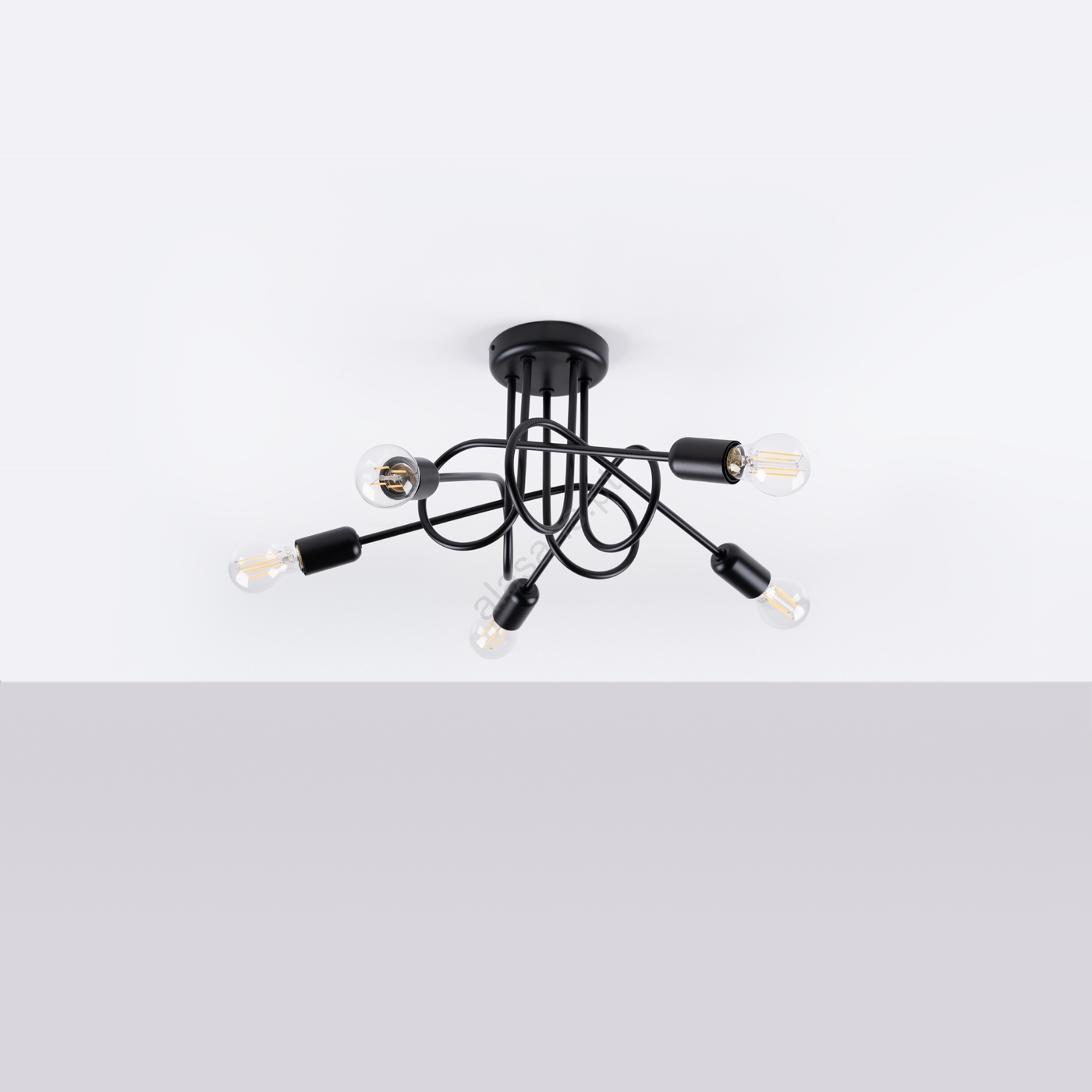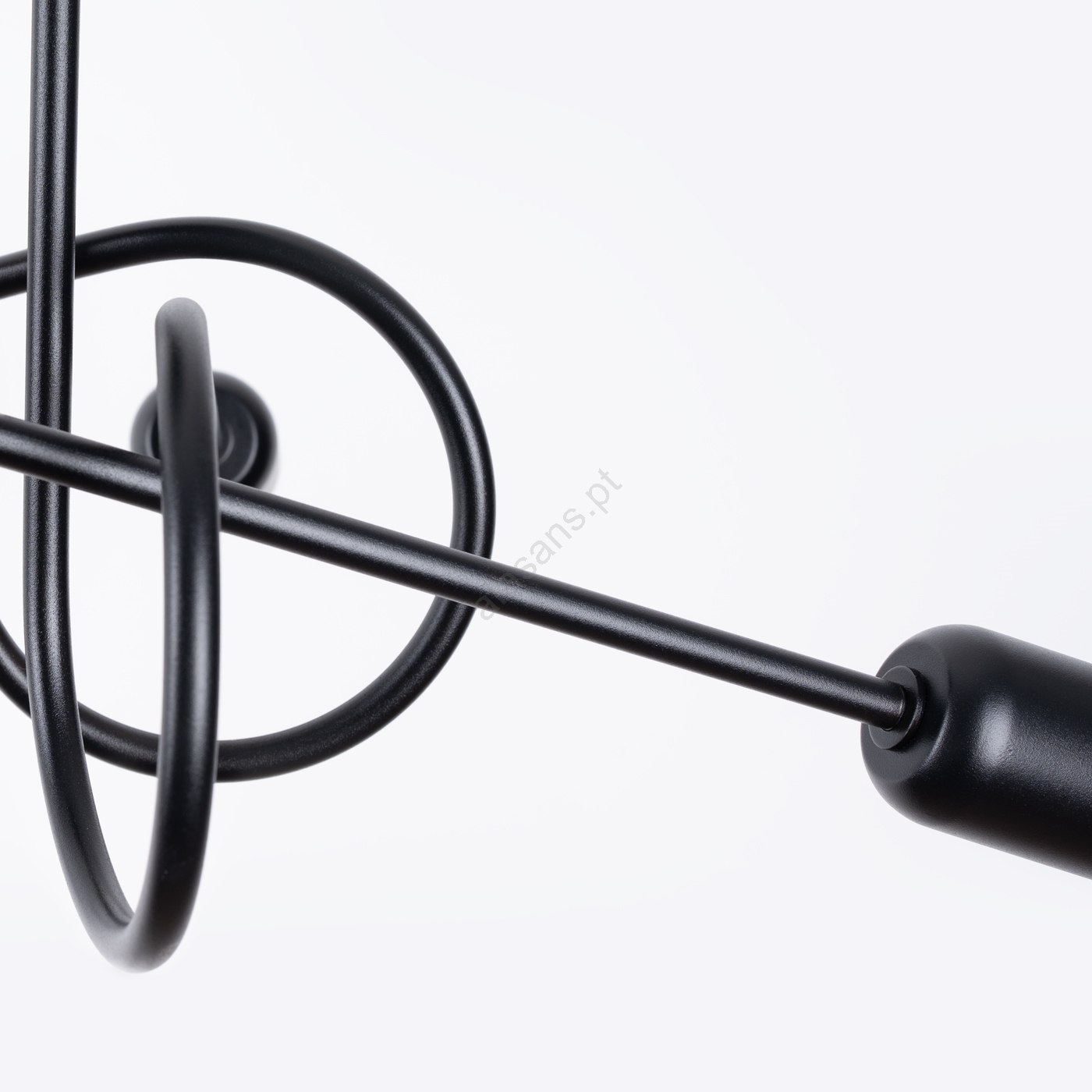 Candeeiro integrado LOOP 5xE27/15W/230V preto caracteriza-se por um design agradável e funcional.  Uma lâmpada com casquilho E27 é adequada para a iluminação Aqui, pode comprar outras lâmpadas a preços vantajosos. Terá um complemento interessante para a sua casa.