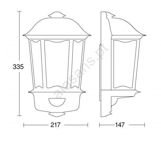 • Lâmpada com sensor em alumínio fundido sob pressão com 2 potentes sensores piroelétricos sob uma lente multifocal de alta resolução.