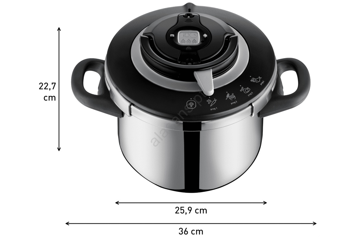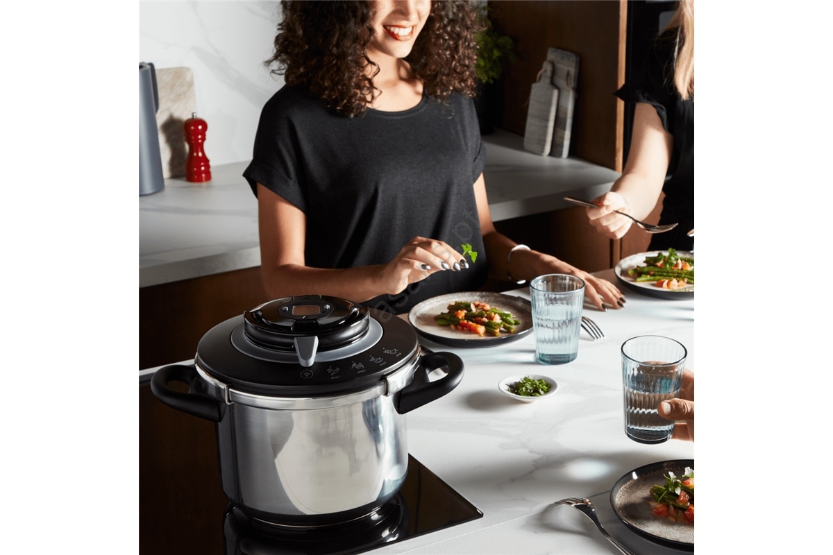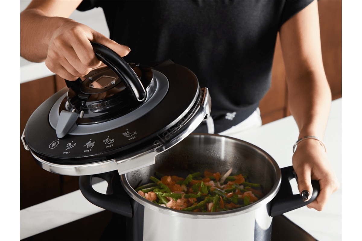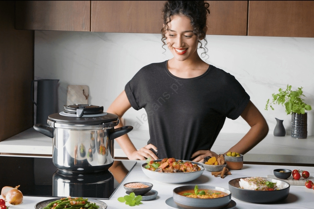 • Permite cozinhar até duas vezes mais rápido do que a cozedura convencional em panela, graças ao mecanismo de pressão.