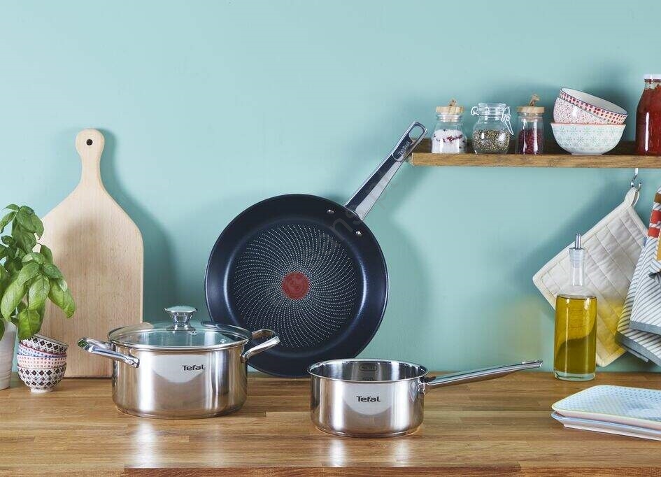 • A linha de panelas em aço inoxidável Cook Eat da marca Tefal é adequada para todos os tipos de fogões.