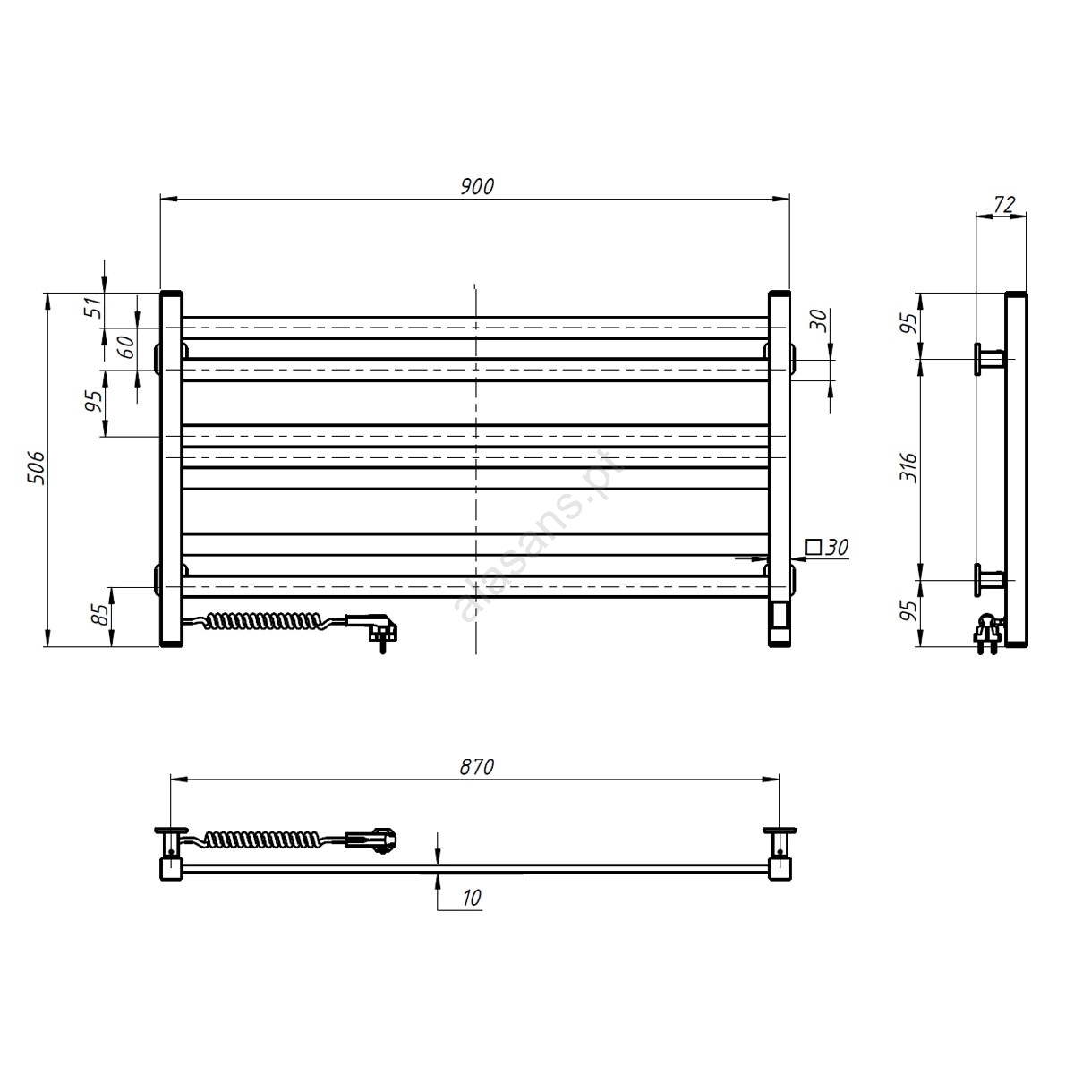 Radiador toalheiro em escada para casa de banho com termostato AVANGARD 300W/230V 50,6 cm IP44 branco esquerdo de perfil quadrado