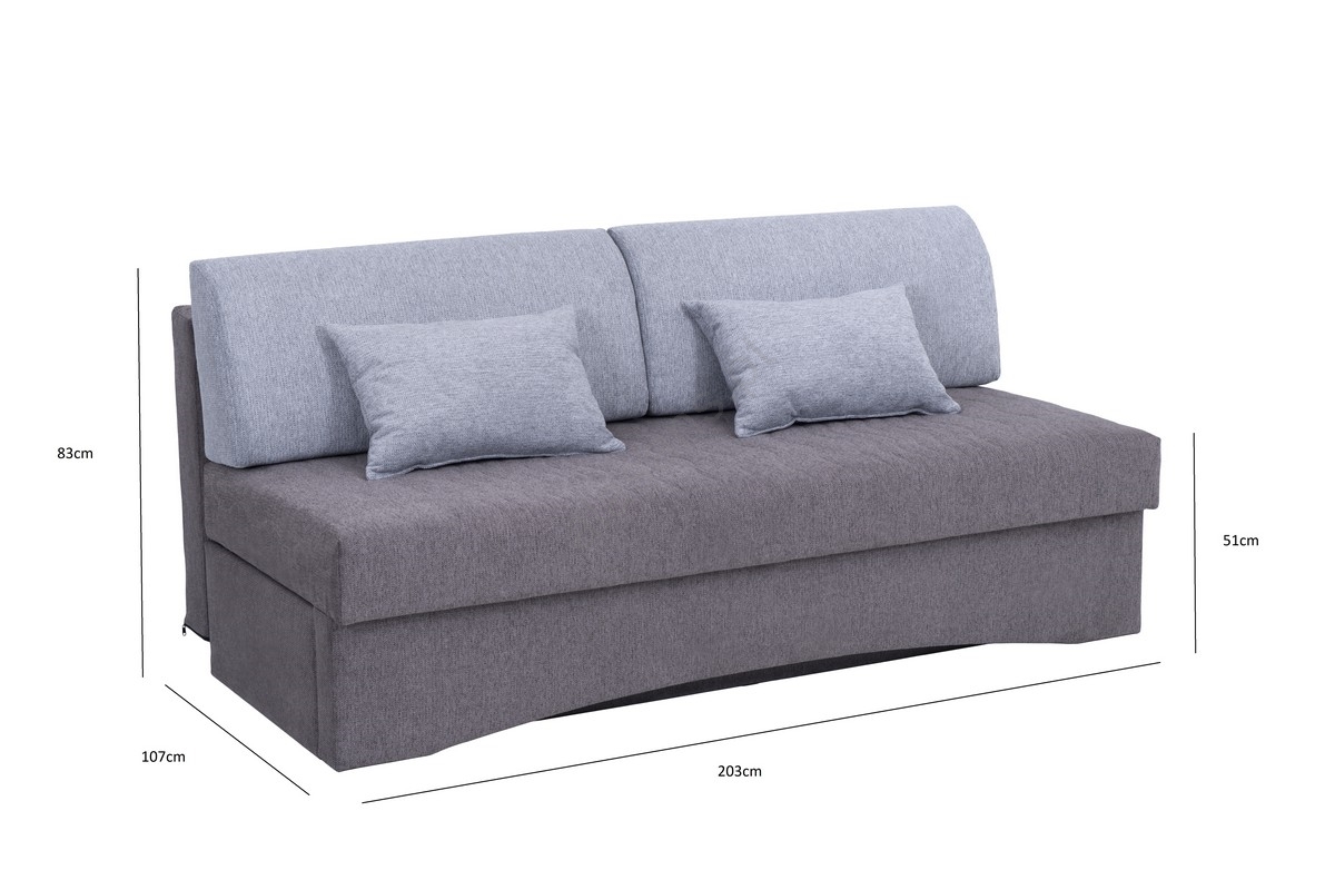 Sofá estofado desdobrável de três lugares para uso diário sem apoios de braço PAUL cinzento