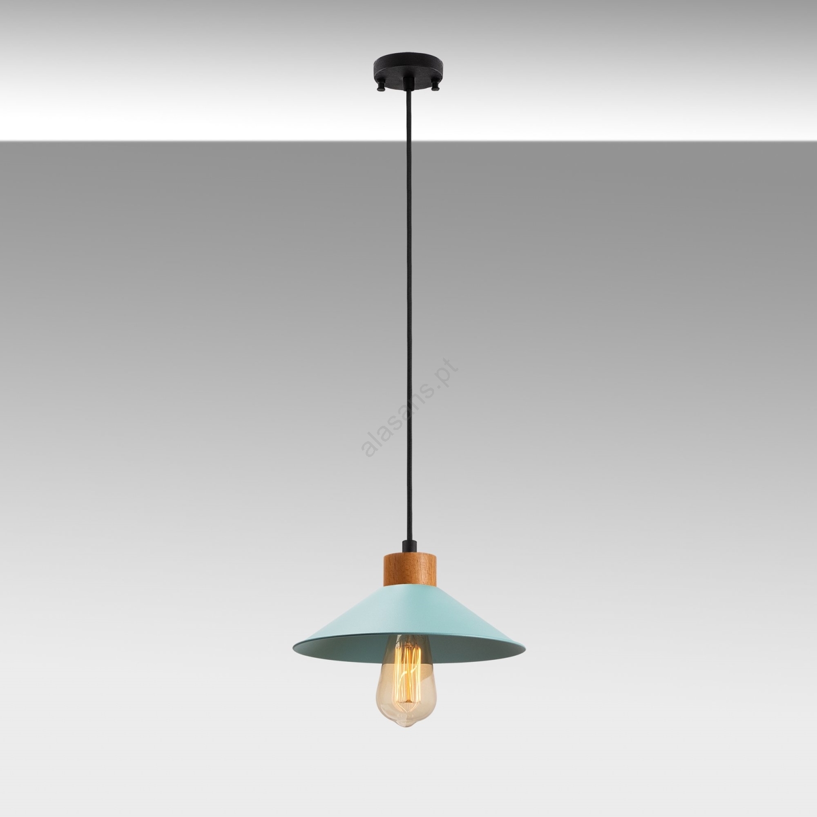 Lustre suspenso por cabo MANAVGAT 1xE27/40W/230V azul/castanho caracteriza-se por um design agradável e funcional.  Uma lâmpada com casquilho E27 é adequada para a iluminação Aqui, pode comprar outras lâmpadas a preços vantajosos. Terá um complemento interessante para a sua casa.
