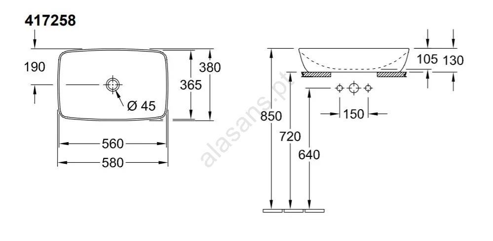 • Villeroy & Boch 417258R1 - Lavatório de sobrepor ARTIS 58x38,5 cm cerâmica/branco
