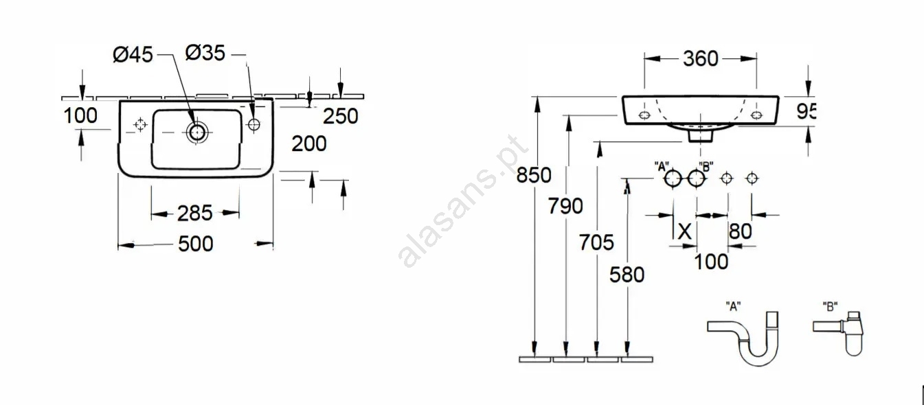 Villeroy & Boch 4342R501 - Lavatório suspenso O.NOVO 50x25 cm cerâmica/branco