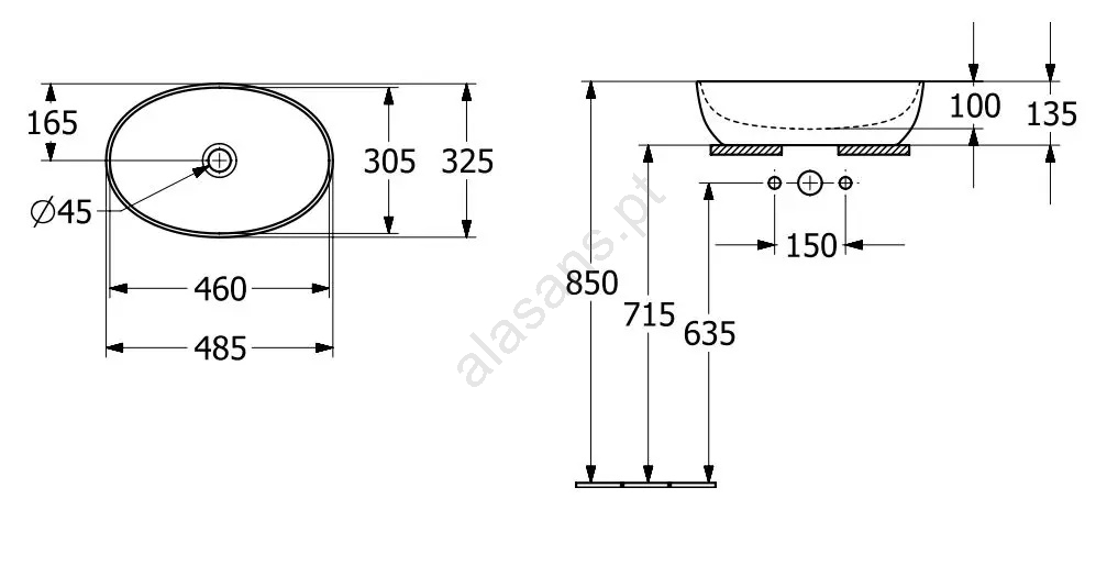 Villeroy & Boch 43884801 - Lavatório de bancada ARTIS 48x32,5 cm cerâmica/branco