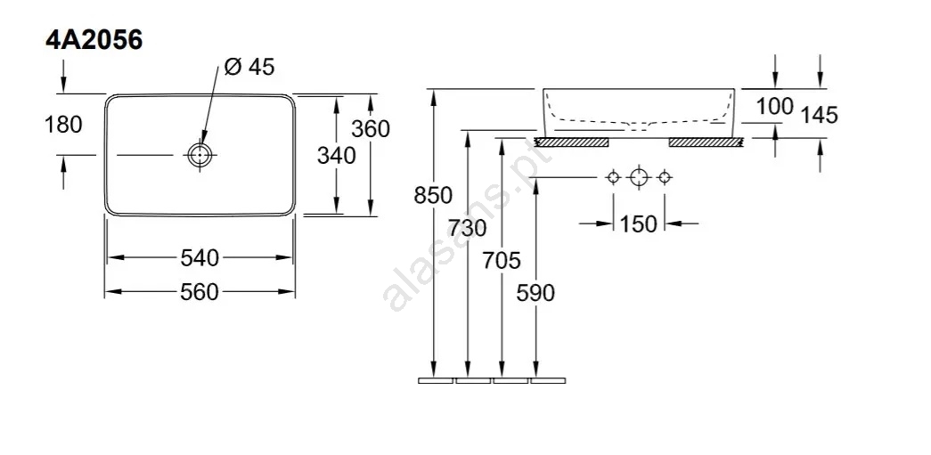 • O misturador e a válvula de escoamento não estão incluídos na embalagem.