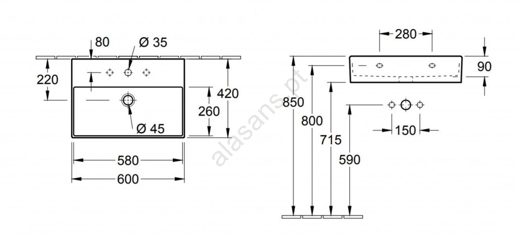 Villeroy & Boch 4A226001 - Lavatório suspenso MEMENTO 60x42 cm cerâmica/branca