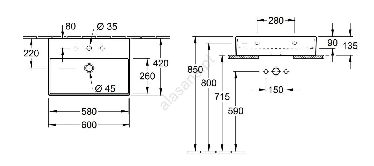 Villeroy & Boch 4A226G01 - Lavatório suspenso/para bancada MEMENTO 60x42 cm cerâmica/branco