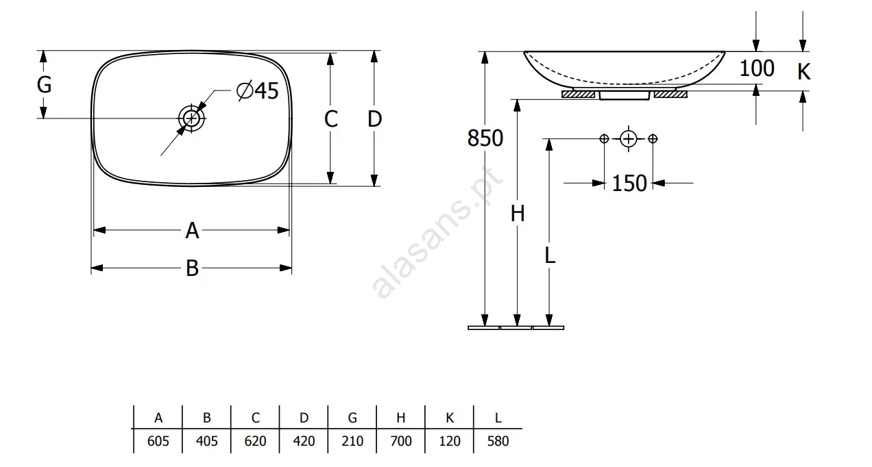 Villeroy & Boch 4A500001 - Lavatório de bancada LOOP&FRIENDS 62x42 cm cerâmica/branco