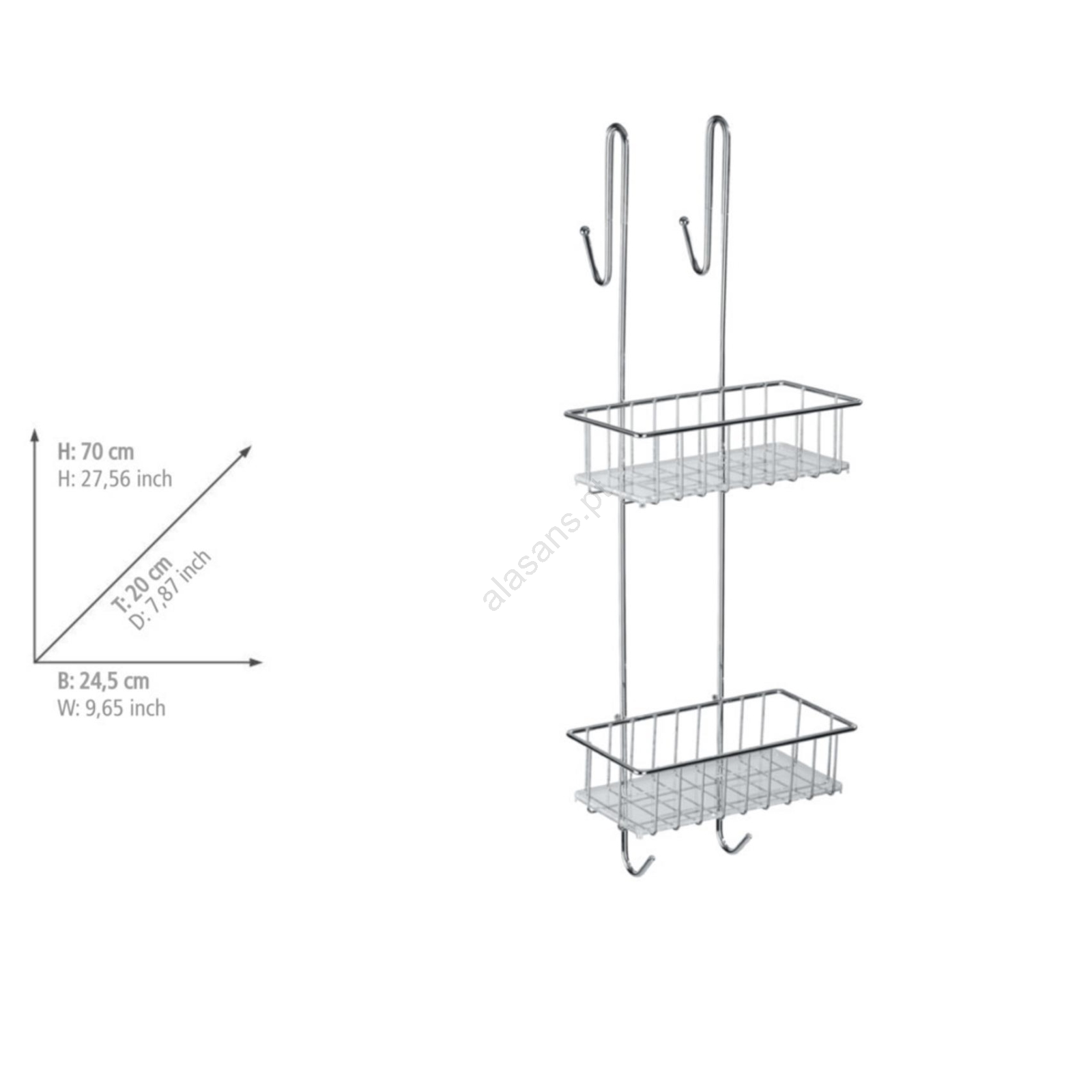 • Prático suporte de duas prateleiras para casa de banho para máxima poupança de espaço.
