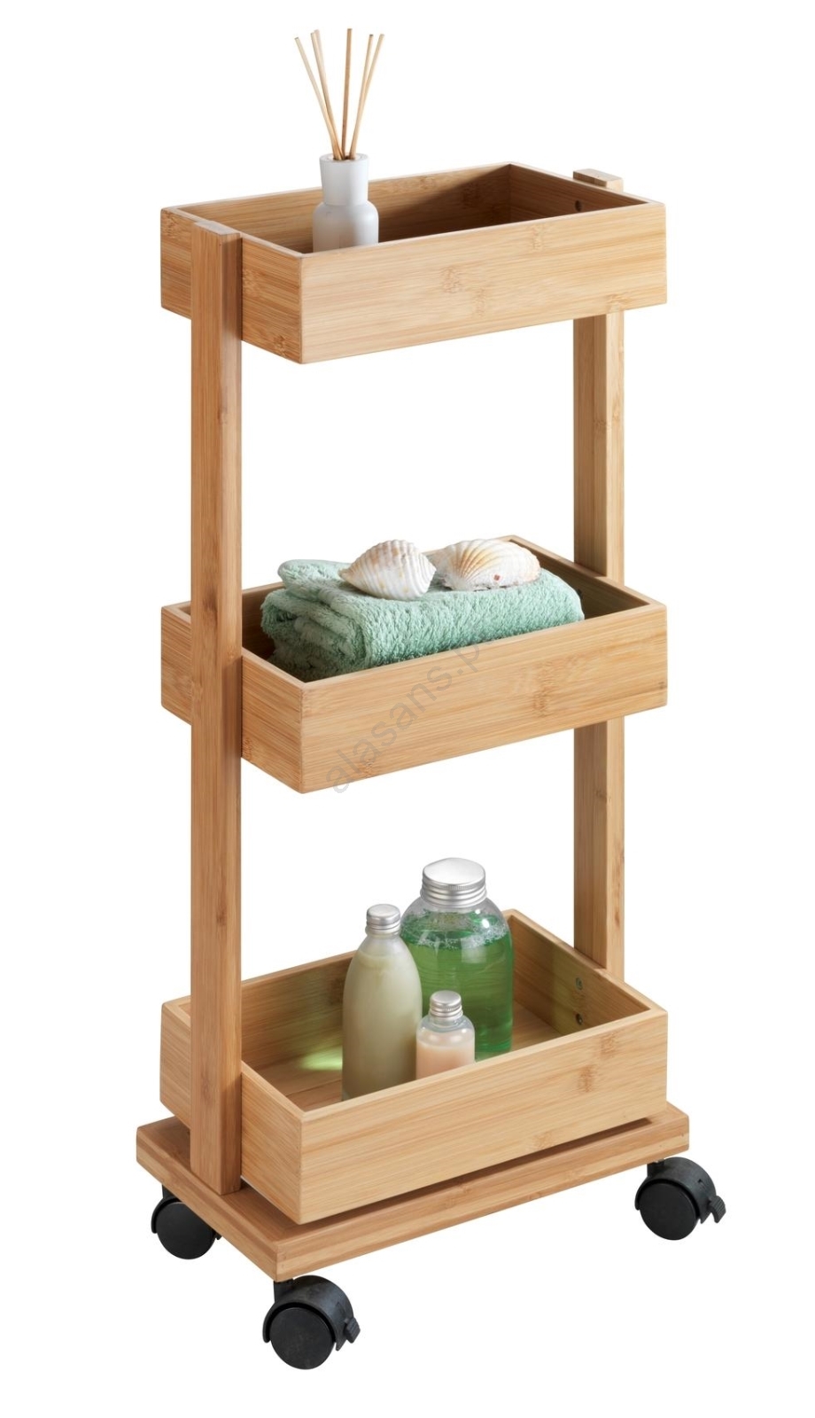 • Estante de arrumação estilosa sobre rodízios em bambu natural.