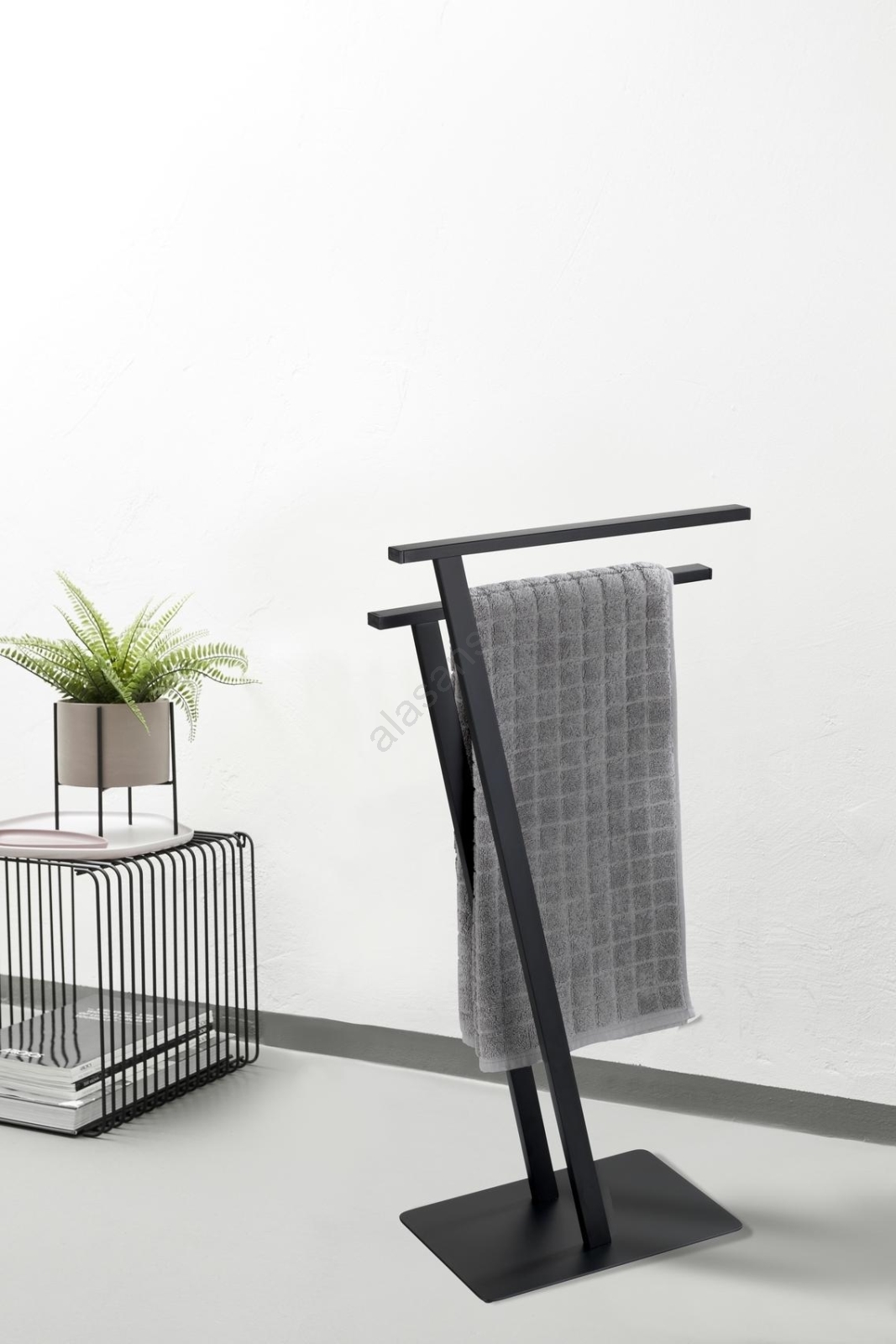 • Suporte moderno para toalhas e roupas com acabamento preto mate.