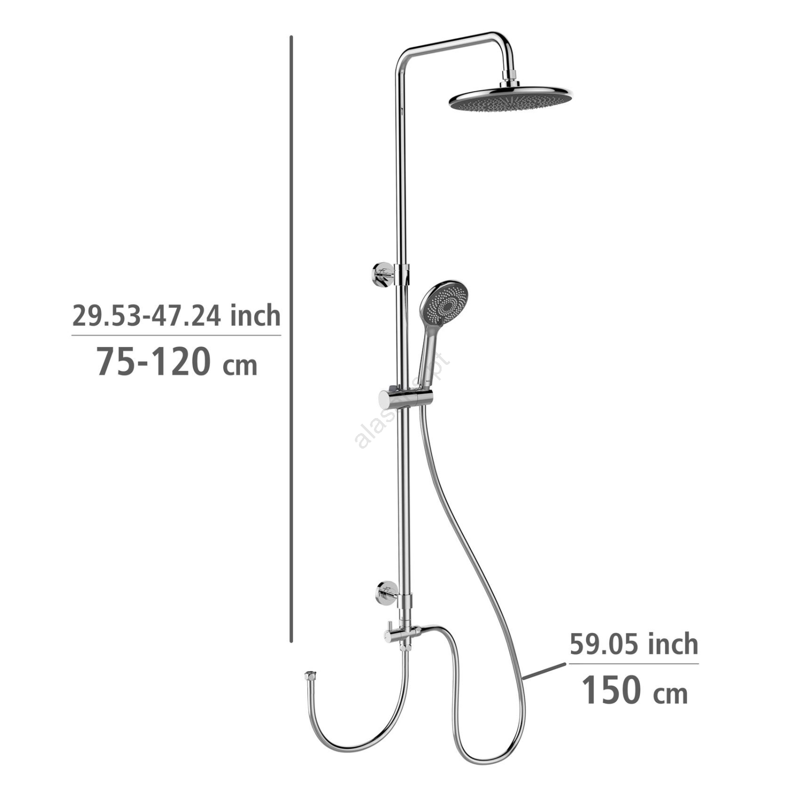 • Barra de duche em aço inoxidável com altura ajustável de 75–120 cm.