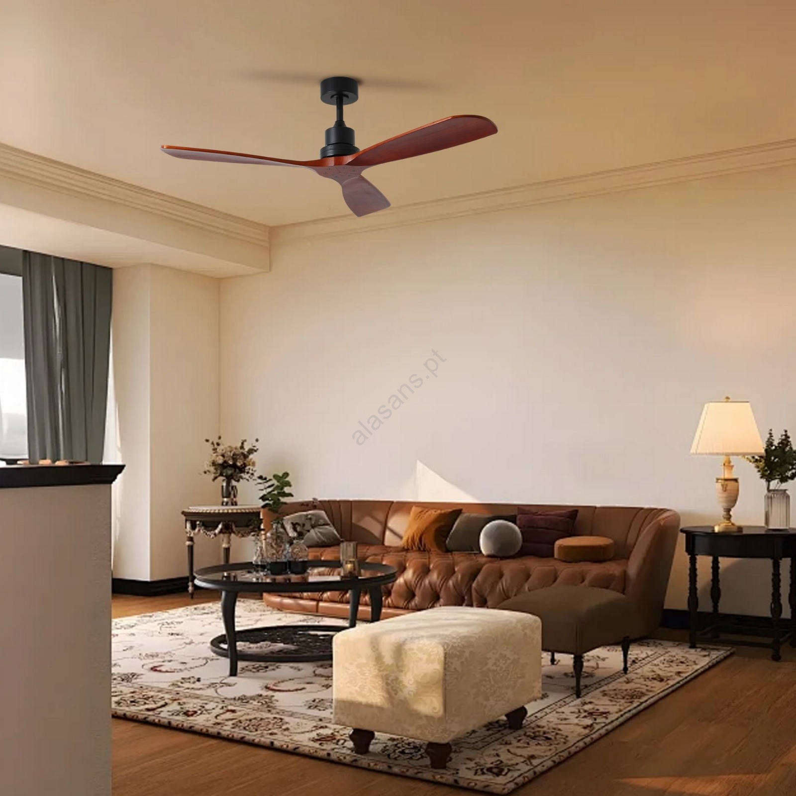 ZEVENTI - Ventilador de tecto LIONI Wi-Fi Tuya preto/carvalho + controlo remoto